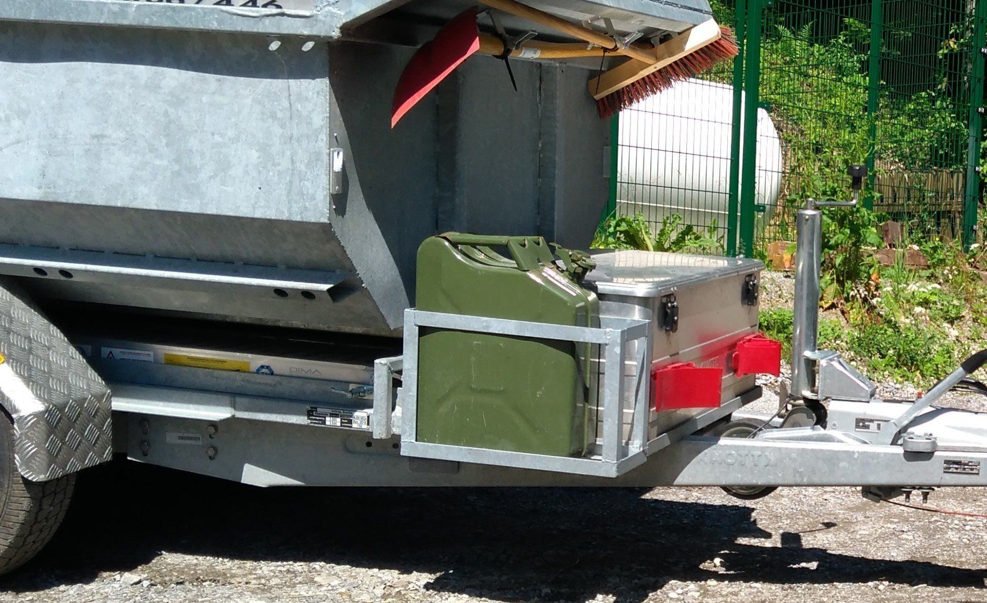Der Reservekanister wird auf der Deichsel neben der Aluminiumkiste für die Hydraulik, Spanngurte und Co untergebracht - kein Umkippen des Kanisters auf der Ladefläche.